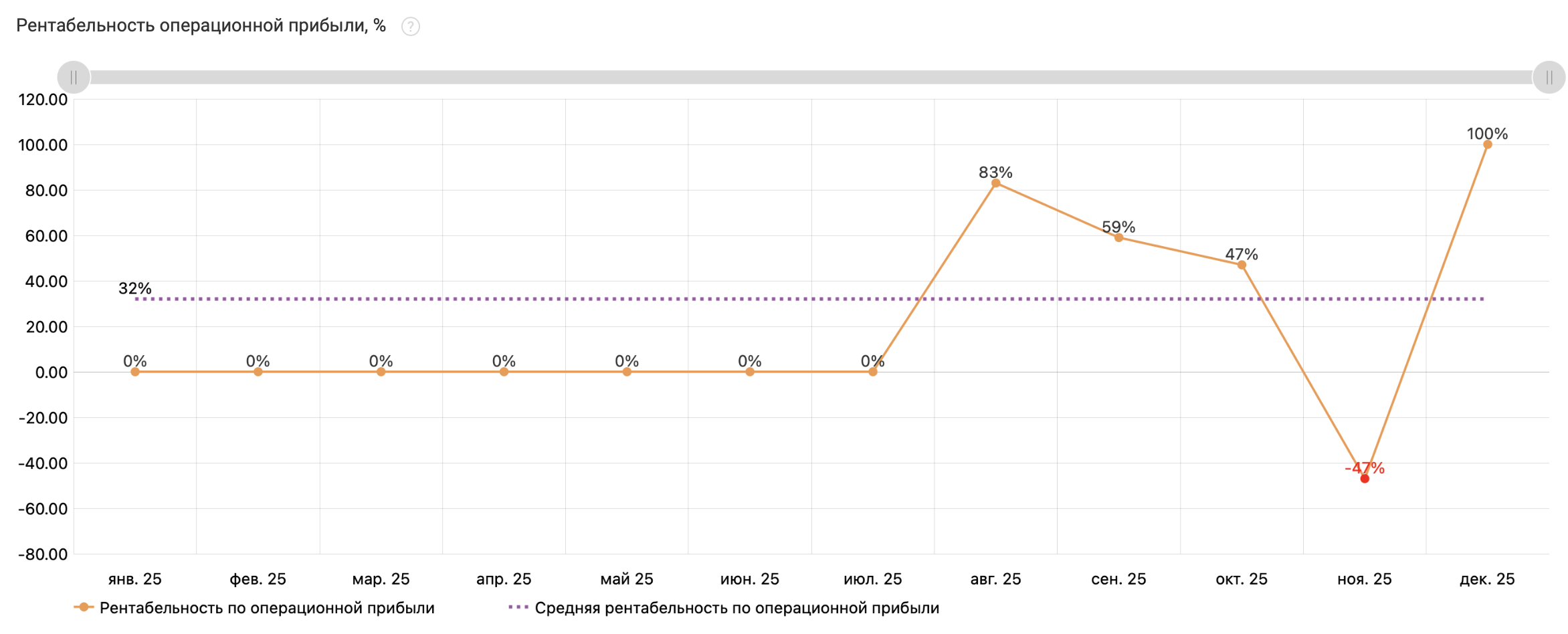 Рентабельность по каждому виду прибыли сразу видна в ОПУ. Для удобства анализа можно воспользоваться графиками: