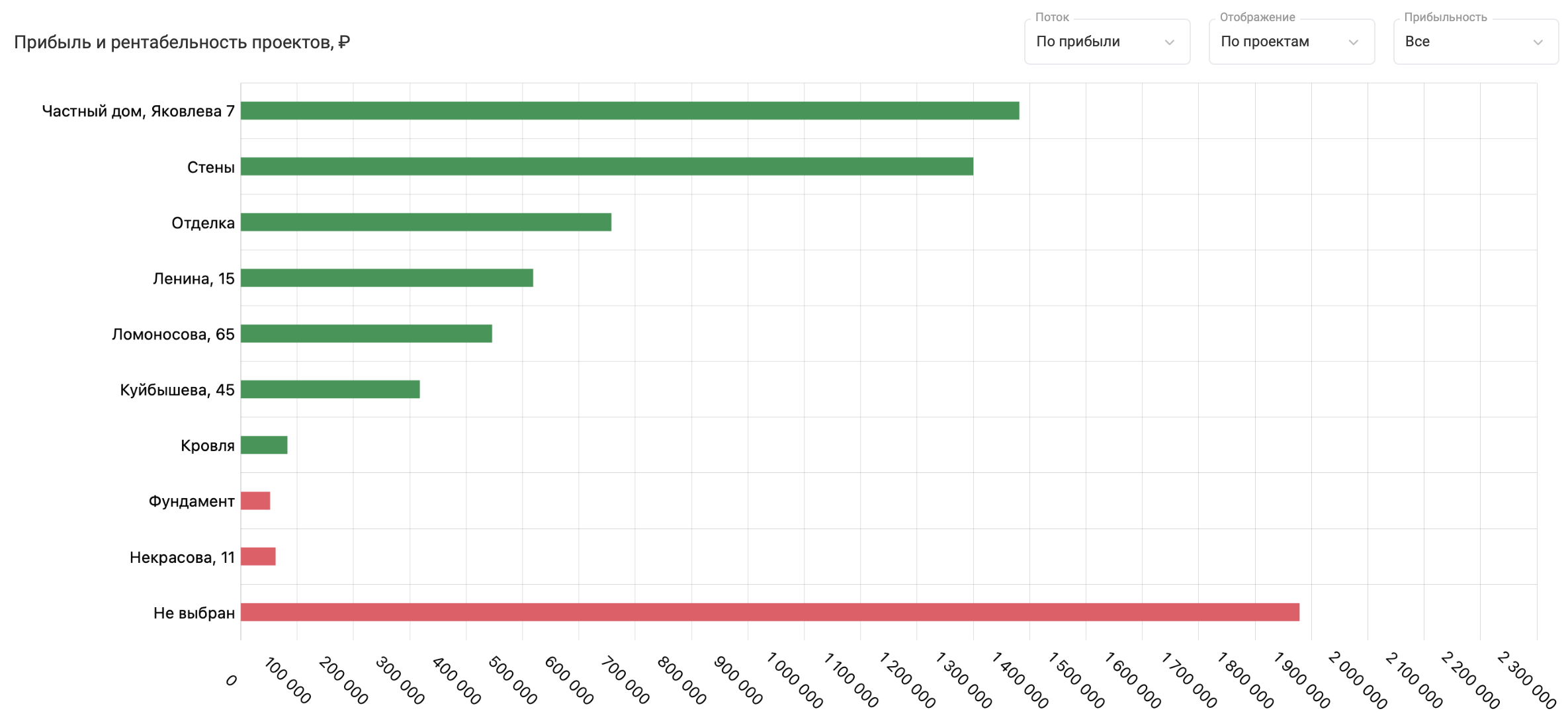 В диаграмме сразу видно, в каком проекте получена прибыль, а где — убыток