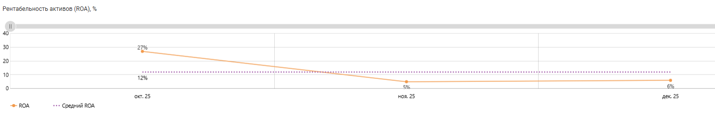 ROA = ЧП / СА = 100 000 ₽ / 800 000 ₽ = 12,5%,