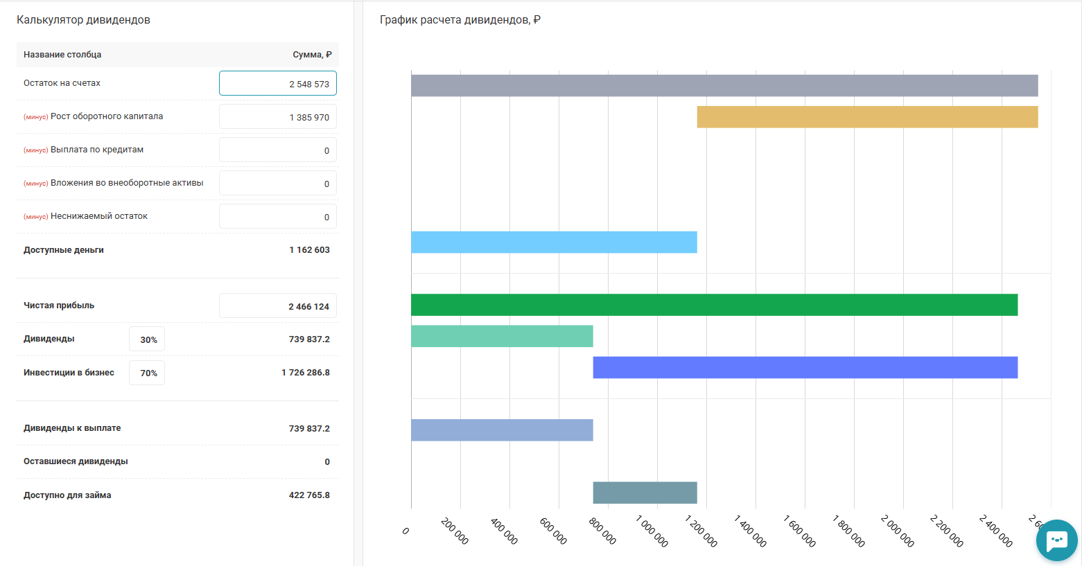Для этого используют формулу расчёта чистых активов, которая может быть автоматизирована через системы учёта и планирования. Для интеграции: