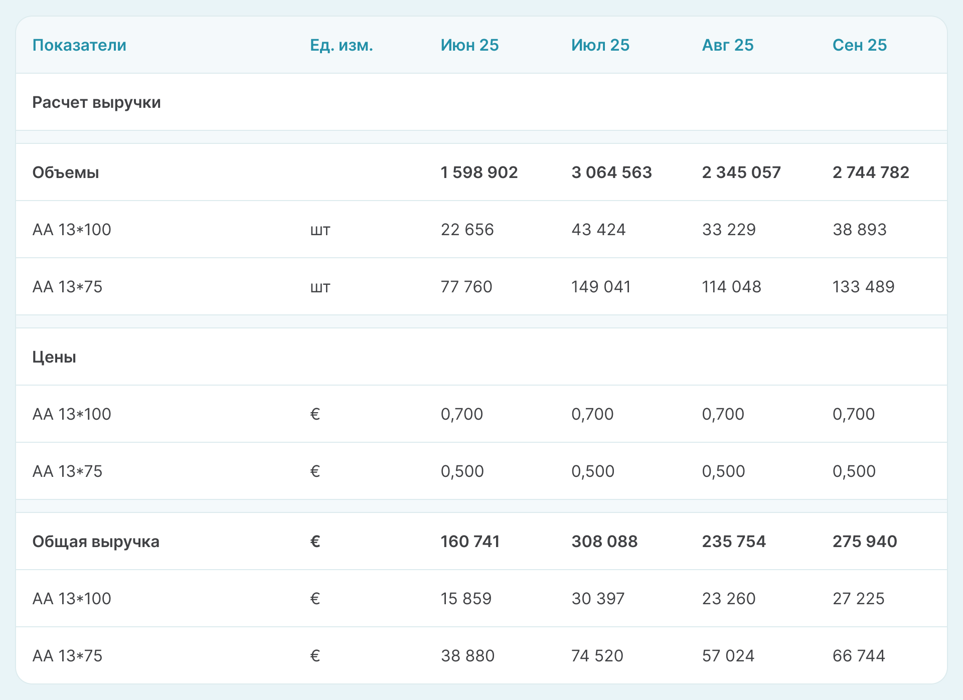 Рассчитали расходы, объемы производства, налоги для финмодели завода
