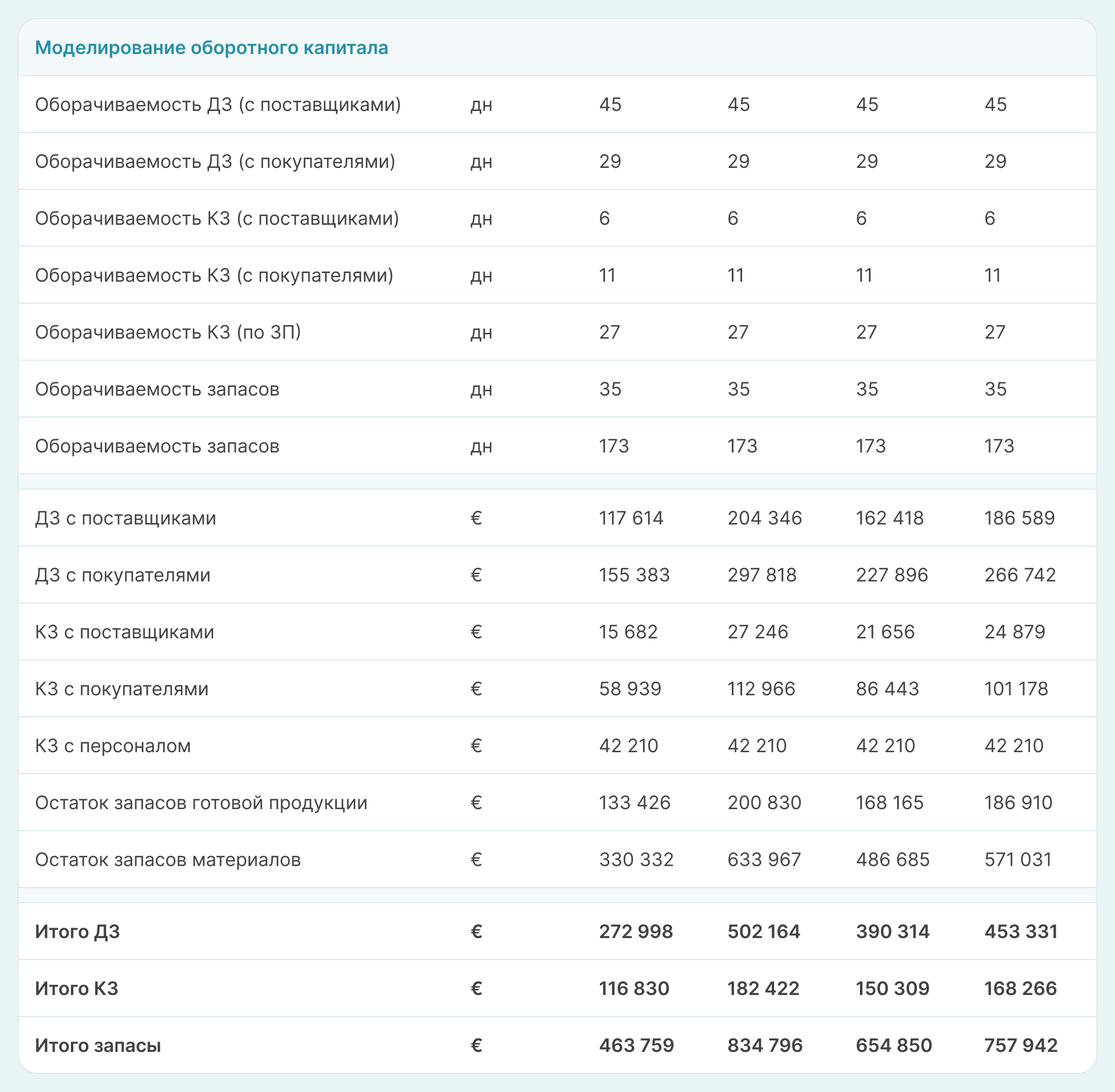 - Спрогнозировали прибыль и риски кассовых разрывов до 2027 года. Оценили за счет чего могут возникать кассовые разрывы и что можно сделать. чтобы их избежать. Например, сократить оборачиваемость запасов до 90 дней, а в расчетах с клиентами сократить среднюю отсрочку до 15 дней.