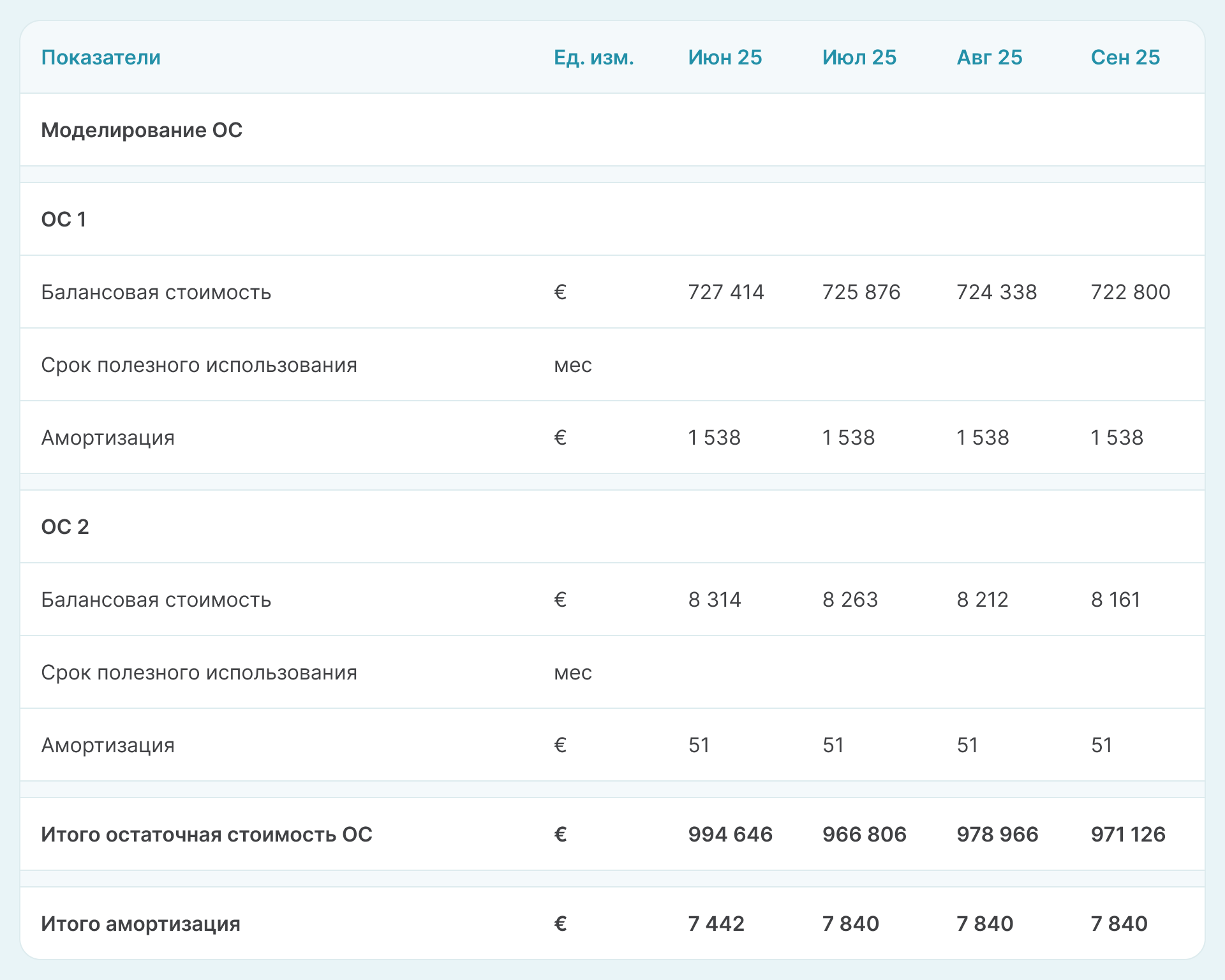 5. Моделирование основных средств и амортизация. У компании есть основные средства: здания и оборудования, по которым начисляется амортизация и учитывается в расчете чистой прибыли.
