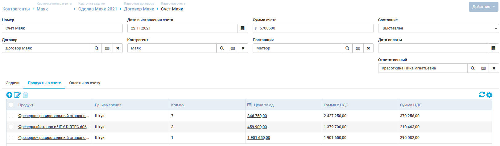 - Финансовый учет. В этом модуле можно контролировать доходы и расходы компании.