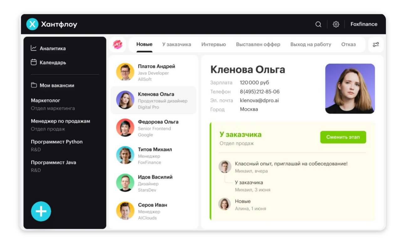 Интерфейс системы. Источник: huntflow.ru