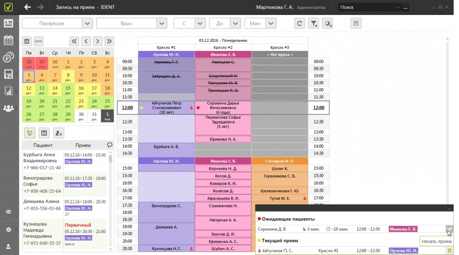 - IDENT — для стоматологий: запись на приём, онлайн-запись, учёт рабочего времени, передача данных в ЕГИСЗ.