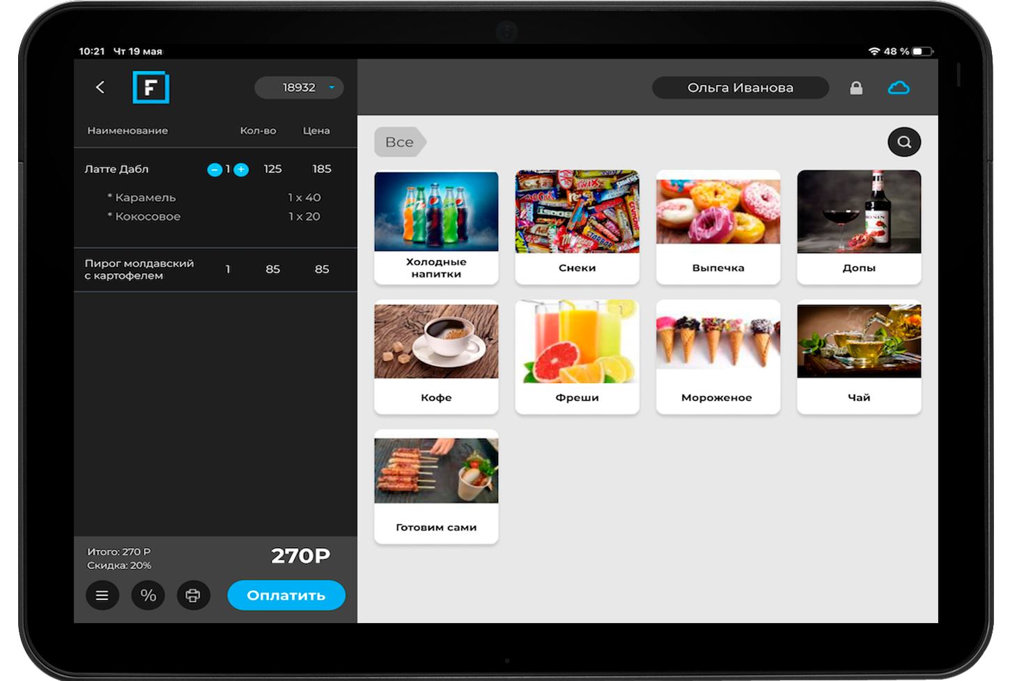 - Fusion POS — для ресторанов и кафе: терминал продаж, аналитика, складской учёт, система лояльности, доставка, учёт финансов.