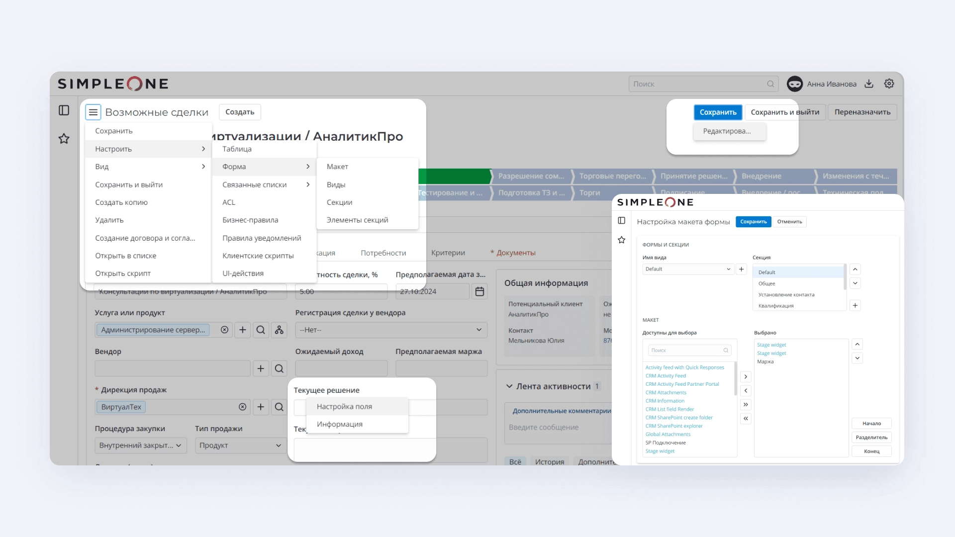 Необычные инструменты SimpleOne B2B CRM: