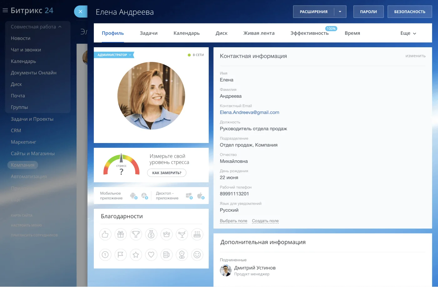 Внутренний портал для сотрудников. Источник: bitrix24.ru