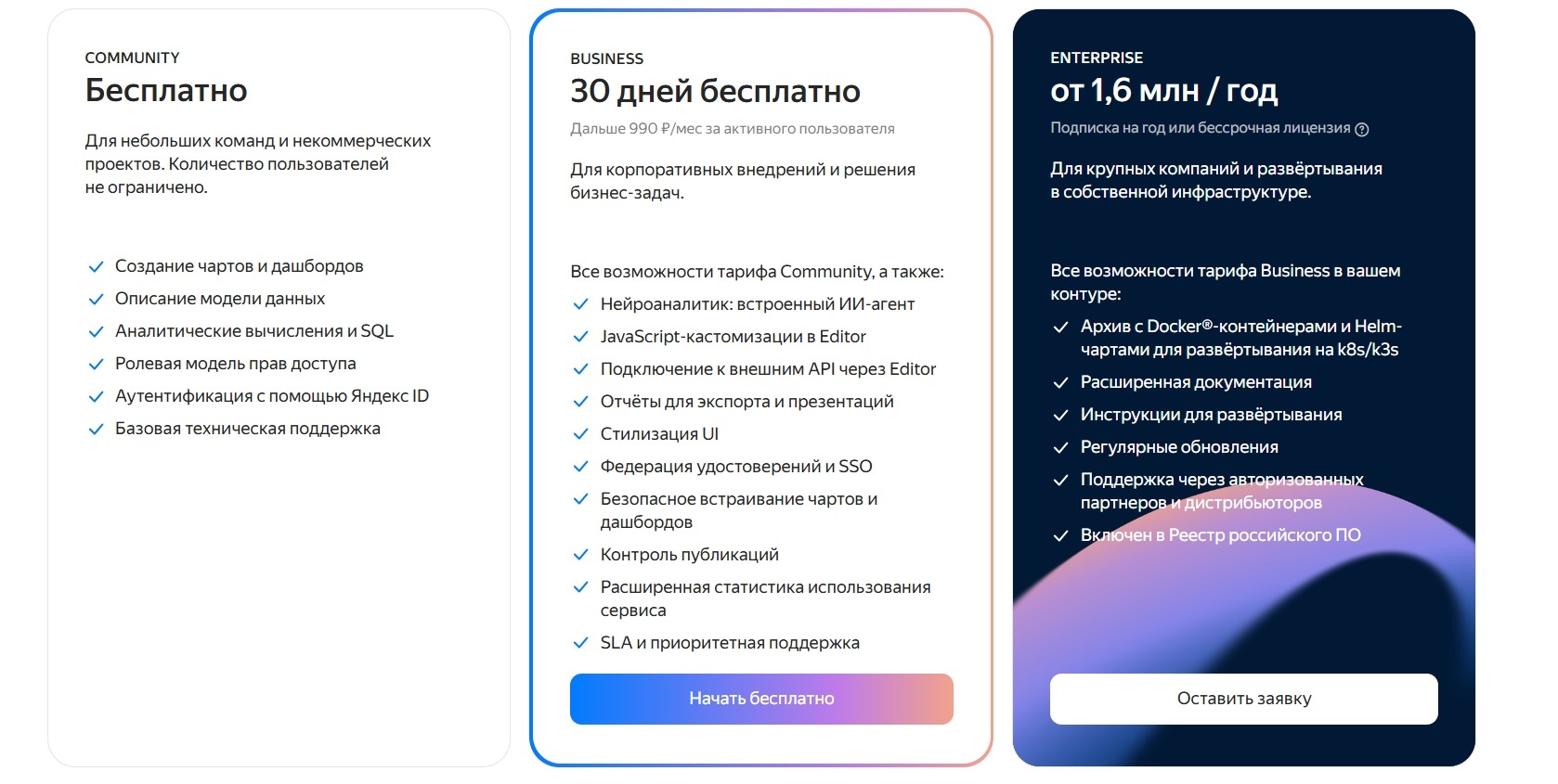 | Yandex DataLens | От 990 ₽ чел/мес |