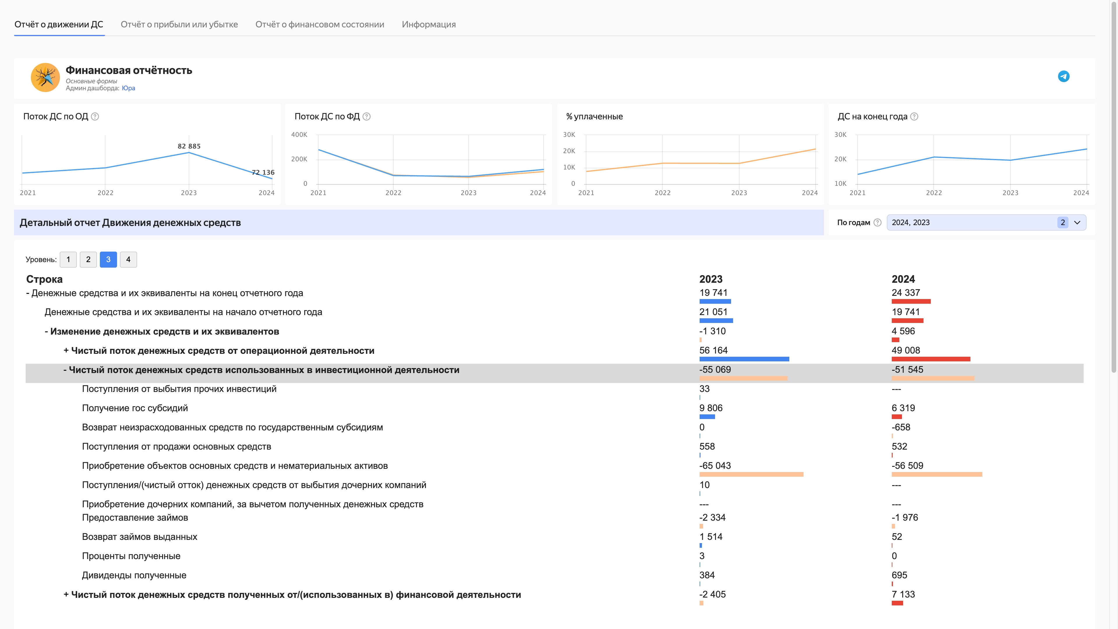 - Есть все отчеты, которые важны для финансового анализа: ДДС, Баланс, ОПУ.