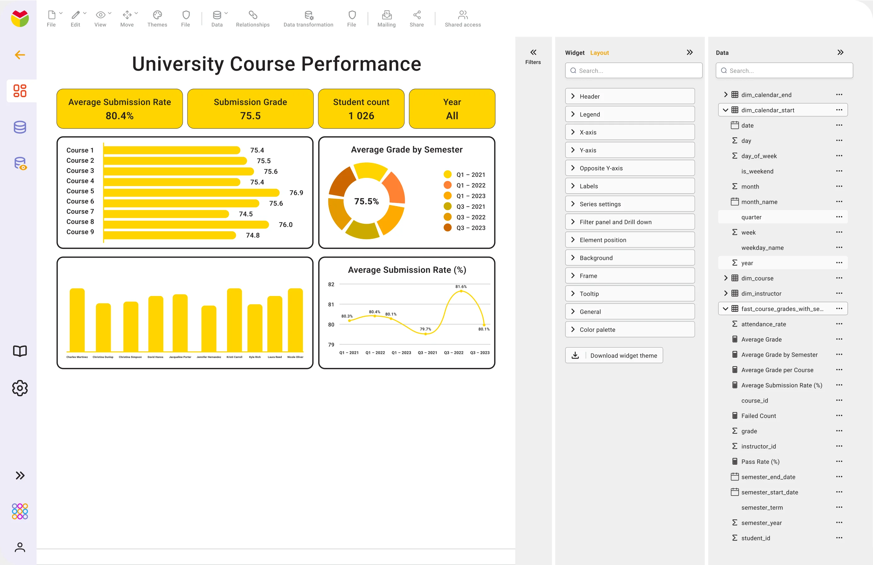 - Создание датасетов — таблиц с настраиваемыми полями и вкладками для анализа и визуализации данных.