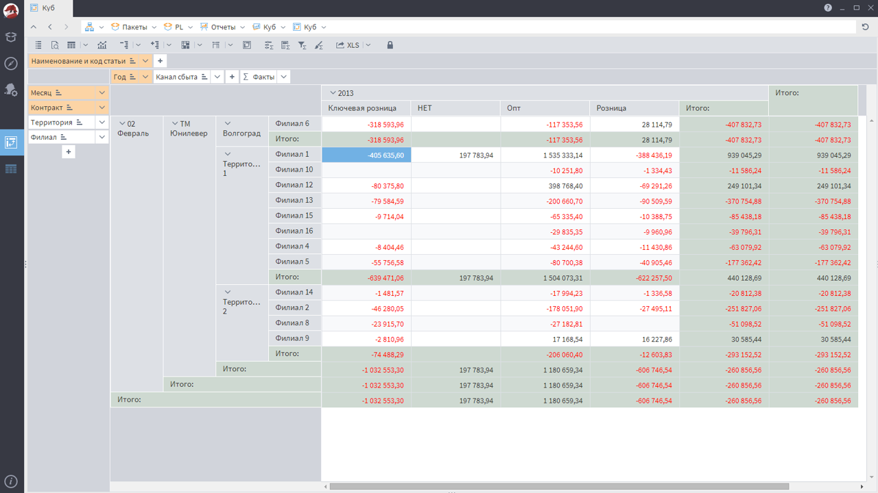 - Ad-hoc-отчетность — можно создавать отчеты в пару кликов благодаря сводным таблицам, графикам, функциям. Легко сравнивать значения для разных периодов.
