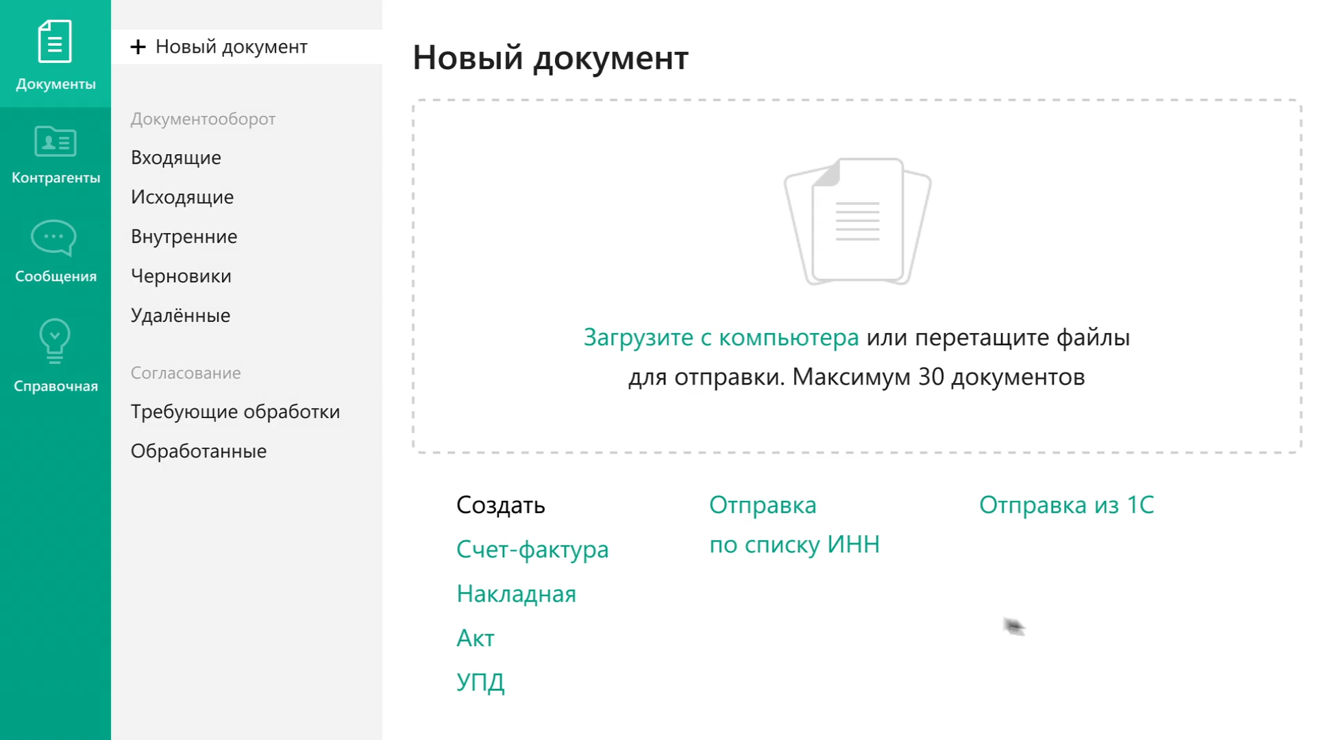 - Создание, отправка и подписание документов (счета-фактуры, УПД, акты, договоры и др.) с КЭП.