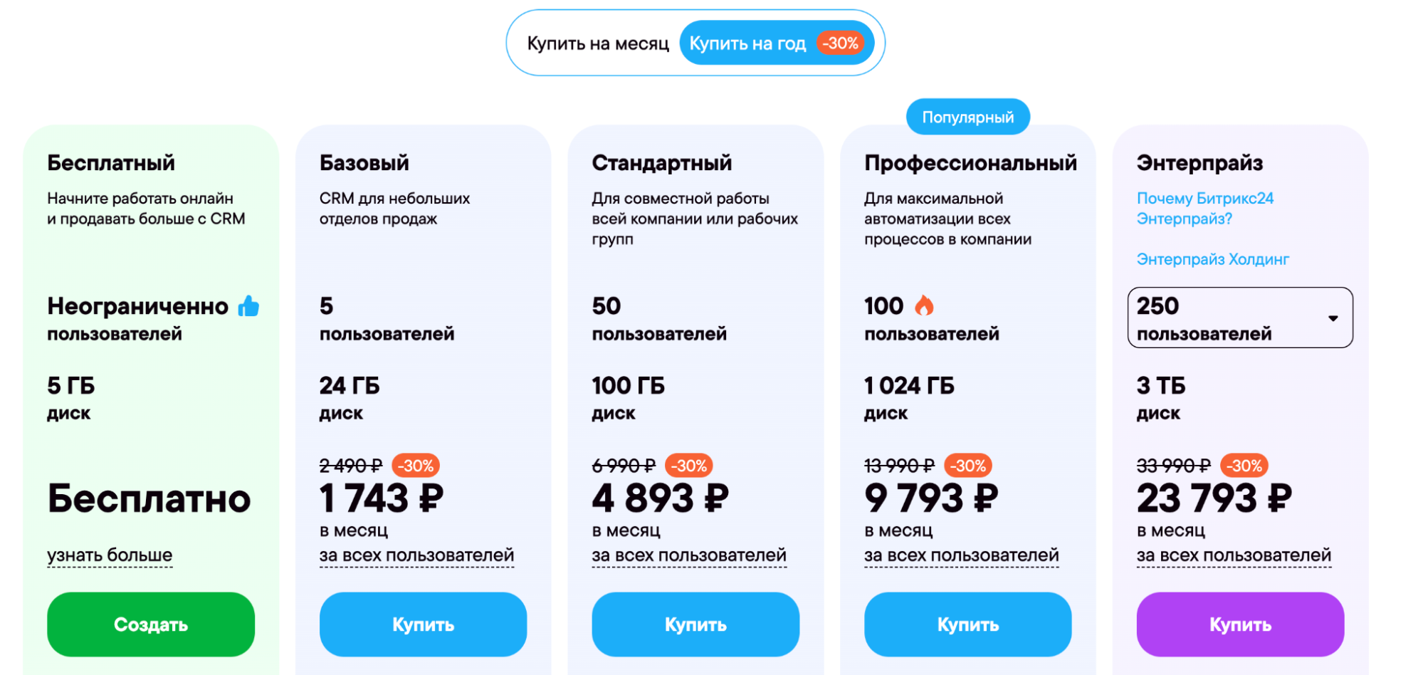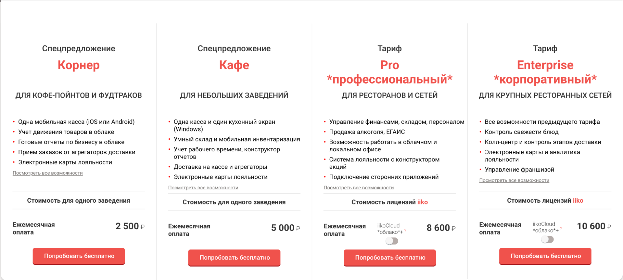 Цена. Есть бесплатный тариф (с базовыми функциями и ограничениями). Платные тарифы — от 1743 ₽ в месяц для облачной версии.